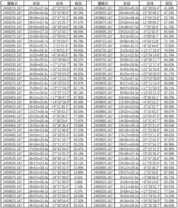 2.4 结合天体的低轨道偏心率,轨道位于地球轨道以内以及轨道半长轴等条件,可判断该天体很可能是金星,这是金星的星历表。