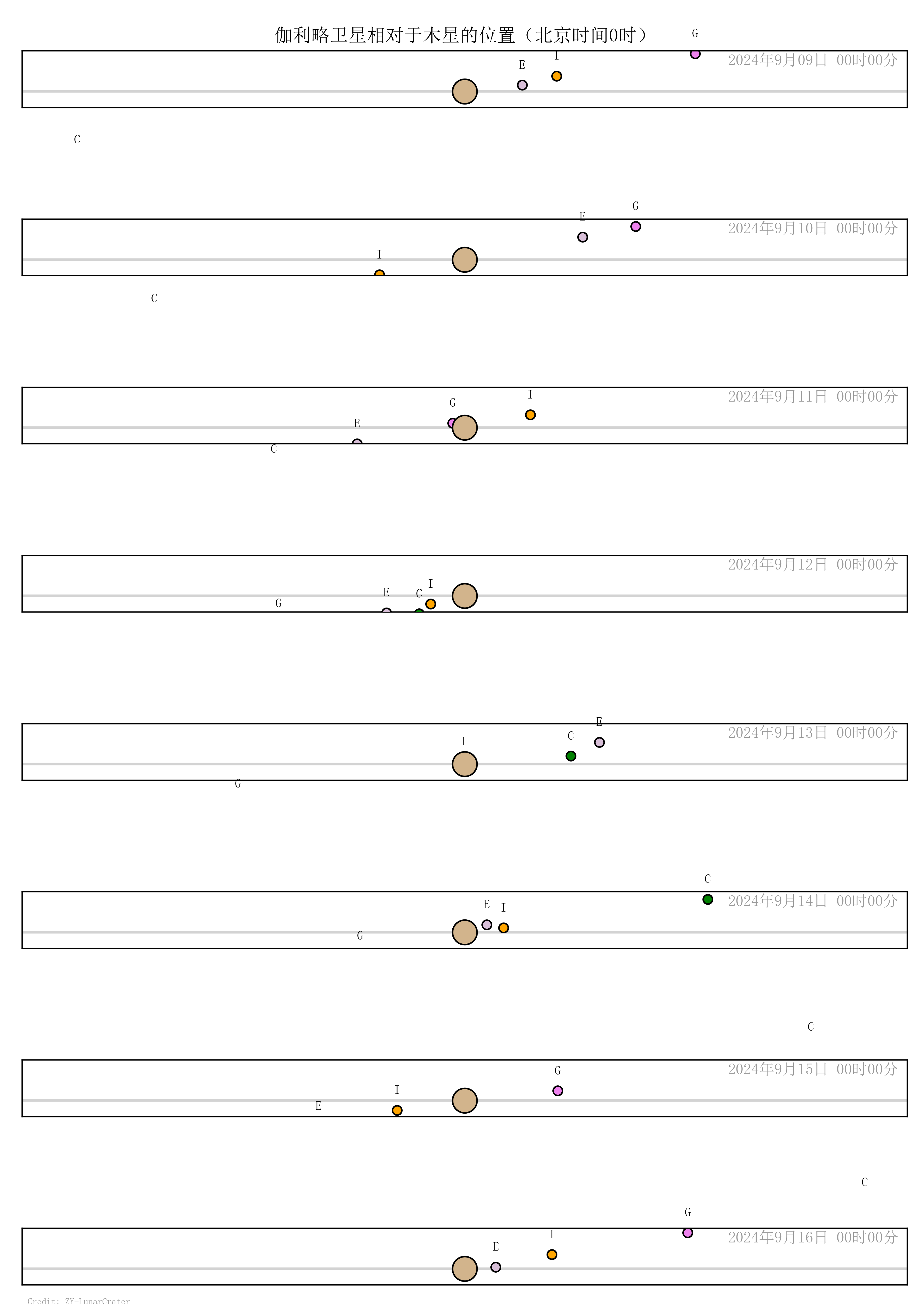 2024年9月伽利略卫星相对于木星的位置(北京0时) 发表于 2024-08-26 分类于 recent-astronomical-events , year , oc-ec-tr-sh , 木星卫星事件 , 掩星 , 天文计算 , 2024年天象(天文年历) , 掩食凌影