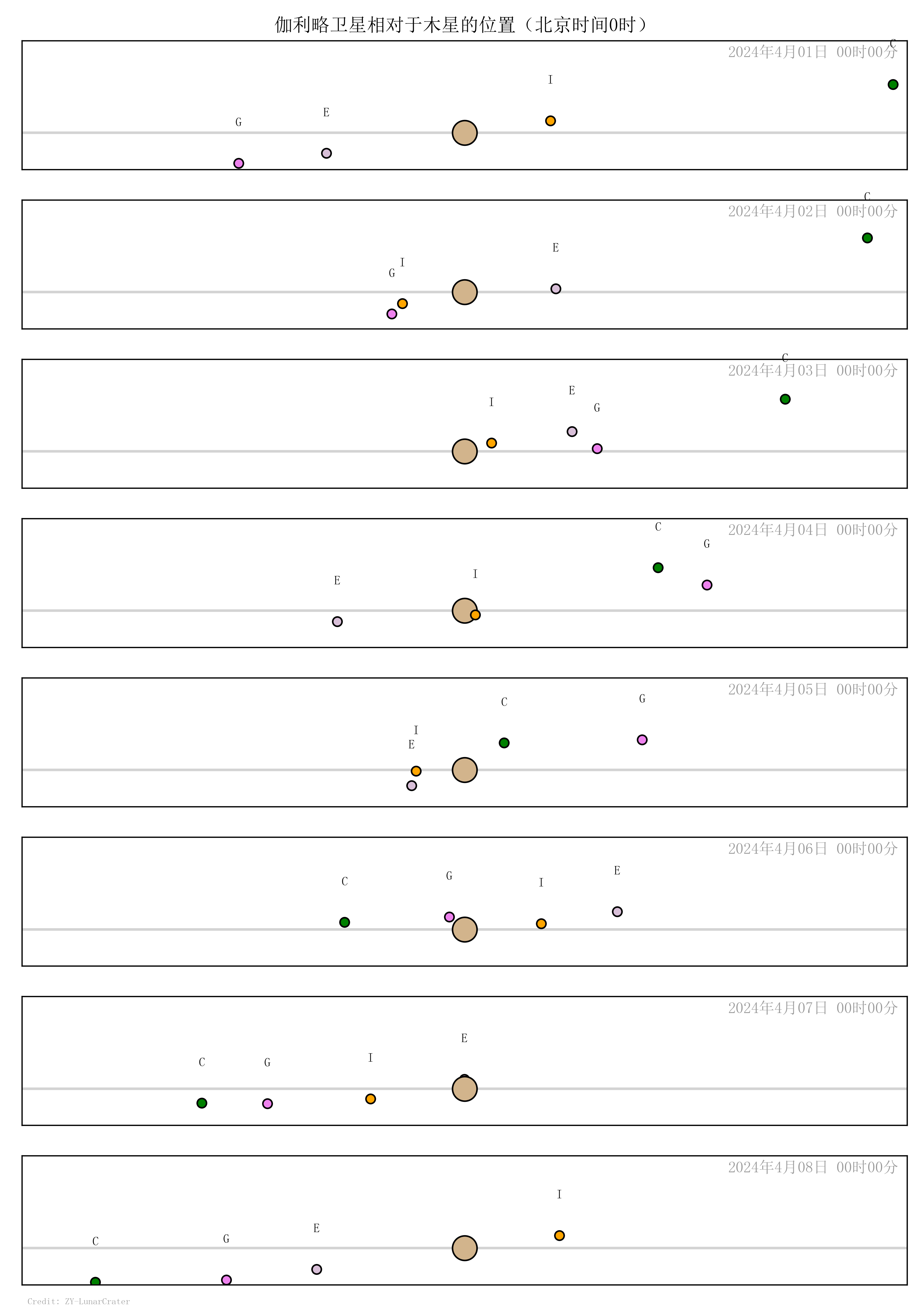 2024年4月伽利略卫星相对于木星的位置(北京0时) 发表于 2024-03-13 更新于 2024-06-16 分类于 year , oc-ec-tr-sh , 木星卫星事件 , 天文计算 , 2024年天象(天文年历) , 掩食凌影
